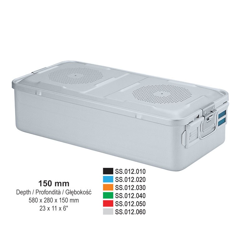 1/1 Falcon container complete with perforated lid + non-perforated bottom, 580x280x150mm, green285,19 € gross Availability: Out of stock SKU: SS.012.040 Categories: Medical, Sterilization aids, Container system, 1/1 Containers