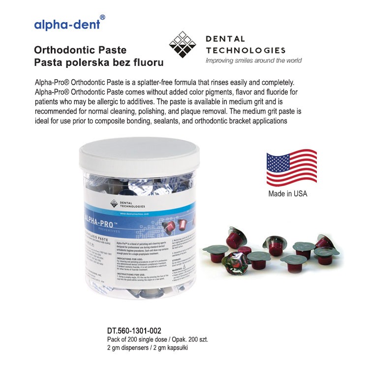 Alpha-Pro® Orthodontic Paste Canister of 200 cups190,00 zł gross Availability: 67 in stock Alpha-Pro® Orthodontic Paste Canister of 200 cups quantity Add to basket SKU: DT.560.1301.002 Categories: Orthodontics, Bonding Supplies, Prophylaxis paste