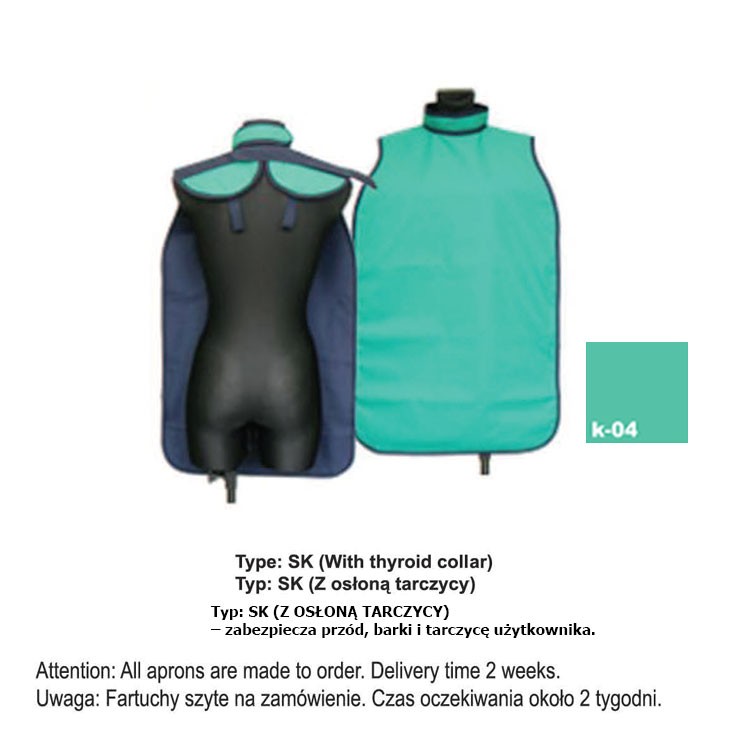 X-Ray Apron type SK-With thyroid collar heavy 0.35mm Pb, 50x80mm800,00 zł gross Availability: Out of stock SKU: DD.1365.03K04 Categories: Dental, Photography and X-Ray, X-Ray Apron heavy 0,35 pb