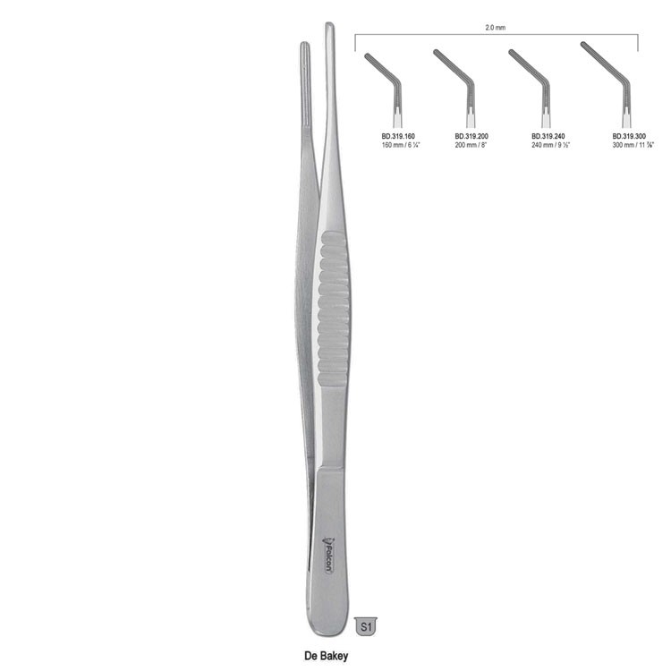Forceps tissue DeBakey atraumatic angled 2.0mm/200mm153,00 zł gross Availability: Out of stock SKU: BD.319.200 Categories: Atraumatic Forceps, Dissecting and tissue forceps, Atraumatic forceps Description Description Made of high grade stainless steel Satin finish Non-Sterile must be inspected cleaned and sterilized before first use Autoclavable at temperature up to 135° C Reusable Corrosion resistant STERILIZATION, CARE & MAINTENANCE INSTRUCTIONS