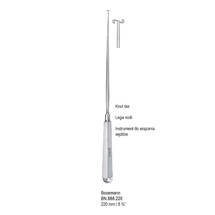 Knot tier Bozemann 220mm105,00 zł gross Availability: Out of stock SKU: BN.888.220 Categories: Medical, Suture clip applying and removing forceps, Suture instruments, Suture knot tier and pushers, Suture knot tier and pushers