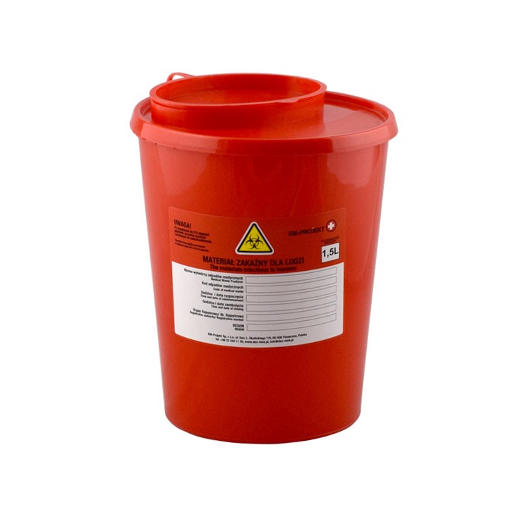 Disposable medical sharp waste container, 1.5L2,80 zł gross Availability: 2 in stock Disposable medical sharp waste container, 1.5L quantity Add to basket SKU: DZ.1200.11 Categories: Dental, Disposable medical waste containers, Disposable medical waste containers, Disposable products