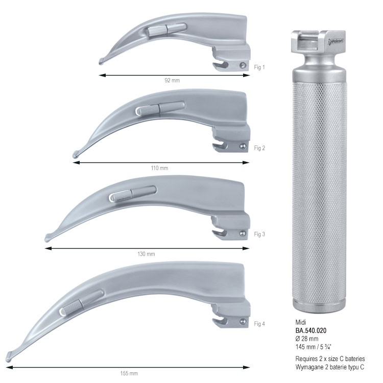 Laryngoscope standard light McIntosh set blades Midi handle fig.0, 1, 2, 3, 4350,00 zł gross Availability: Out of stock SKU: BA.408.000 Categories: Anaesthesia, Conventional laryngoscope sets, Medical