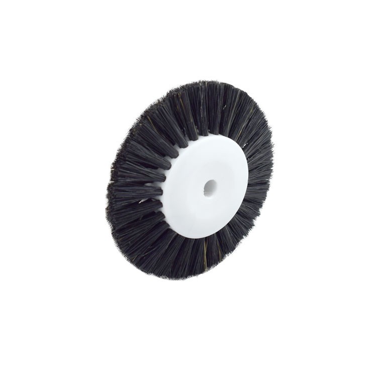 Lathe brush extra stiff black bristle, converging 3 rows ?30mm x 63mm