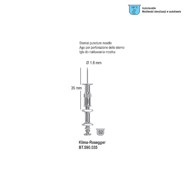 Needle sternal puncture Klima-Rosegger ø 1.8mm, 35mm350,00 zł gross Availability: Out of stock SKU: BT.590.035 Categories: Medical, Trocars, Trocars and needles