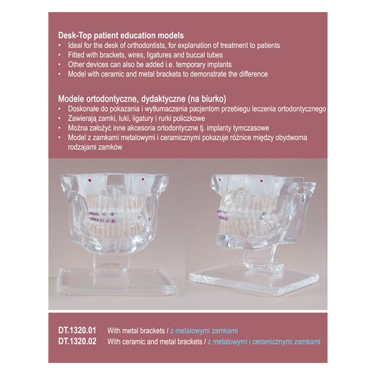 Real Series Desk-Top Orthodontic model with metal/cermamic brackets1300,00 zł gross Availability: 2 in stock Real Series Desk-Top Orthodontic model with metal/cermamic brackets quantity Add to basket SKU: DT.1320.02 Categories: Dental, Teaching aids, Orthodontic models