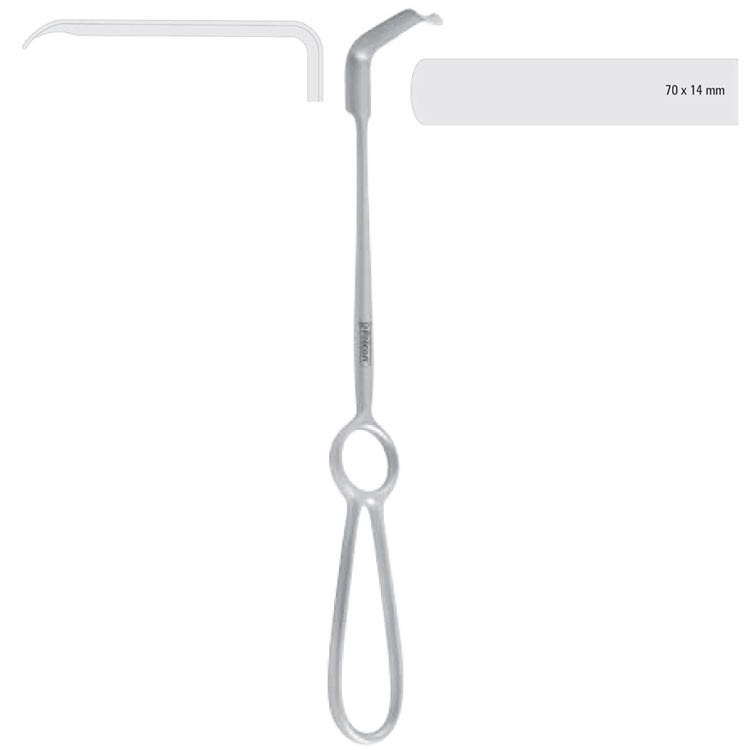 Retractor soft tissue Obwegeser downward 70x14mm, 220mm
