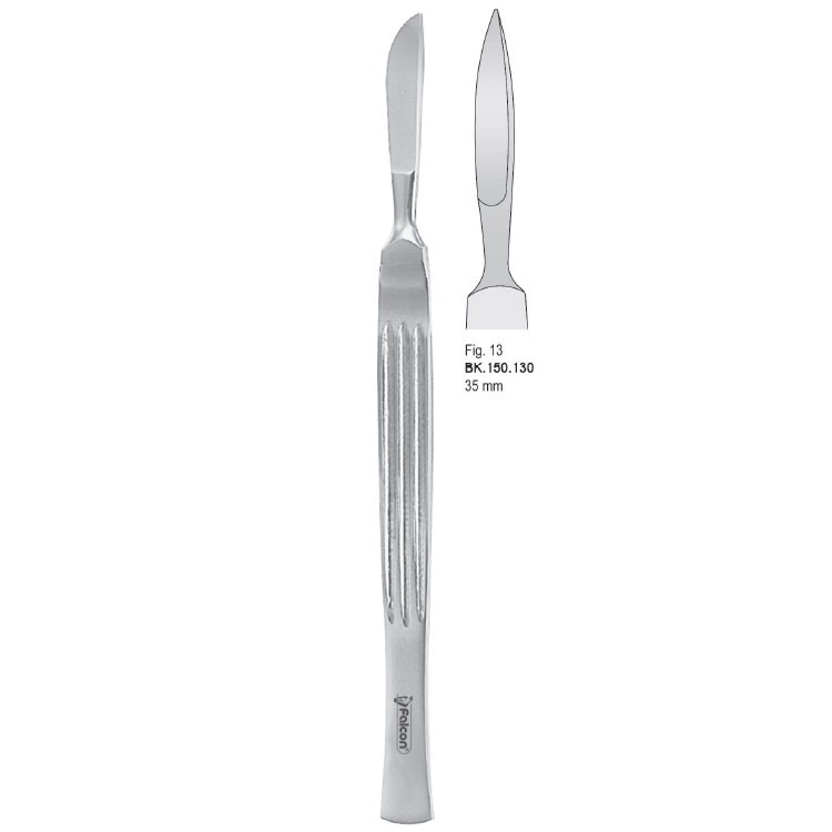 Scalpel stainless steel pointed 35mm blade fig. 1328,00 zł gross Availability: Out of stock SKU: BK.150.130 Categories: Surgery Instruments, Scalpels stainless steel, Scalpels and knives, Scalpels stainless steel Description Description Manufactured from high quality stainless steel Satin finish Non-Sterile must be inspected cleaned and sterilized before first use Autoclavable at temperature up to 135° C Reusable Corrosion resistant STERILIZATION, CARE & MAINTENANCE INSTRUCTIONS