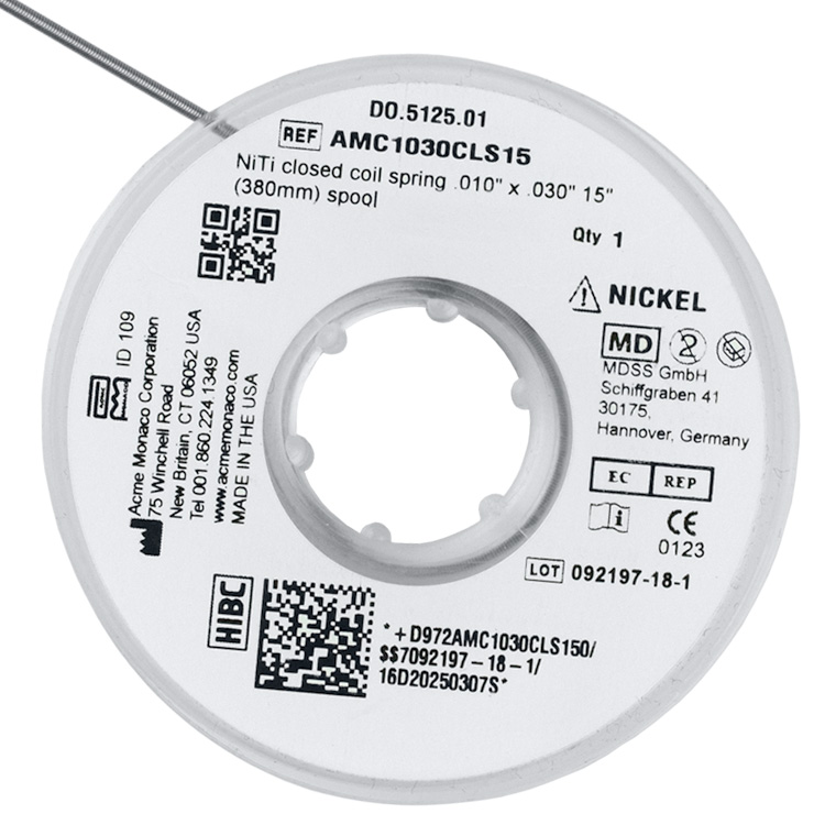 NiTi closed coil spring .010″ x .030″, 15″ (380mm) spool175,00 zł gross Availability: 32 in stock NiTi closed coil spring .010" x .030", 15" (380mm) spool quantity Add to basket SKU: DO.5125.01 Categories: Orthodontics, Wires and Accessories, Nickel titanium springs
