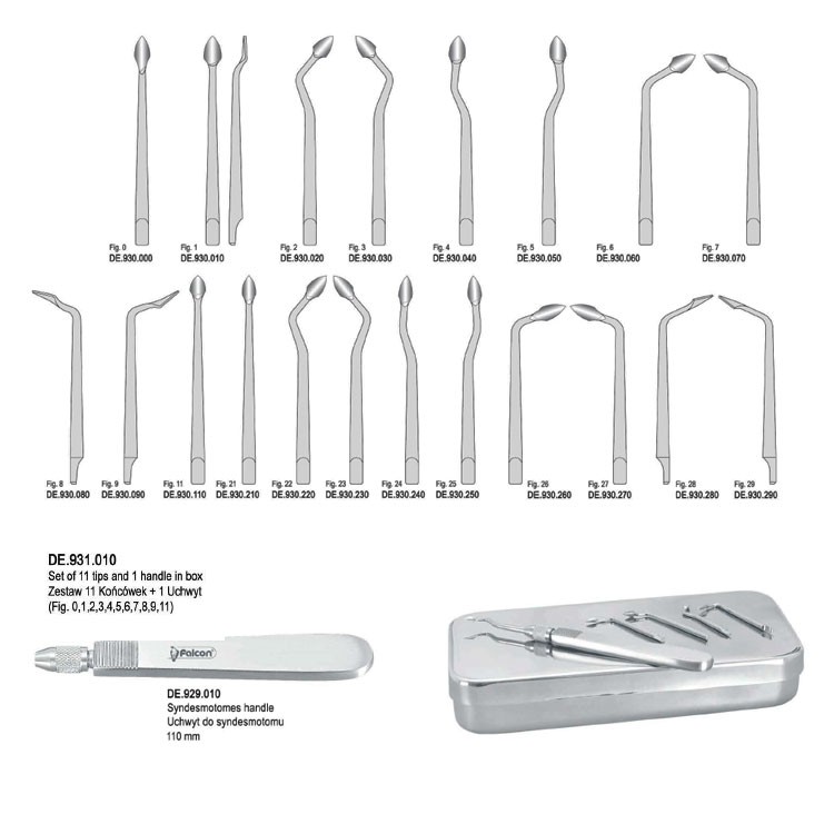 Syndesmotomes Falcon set of 11550,00 zł gross Availability: Out of stock SKU: DE.931.010 Categories: Dental, Extraction, Syndesmotomes