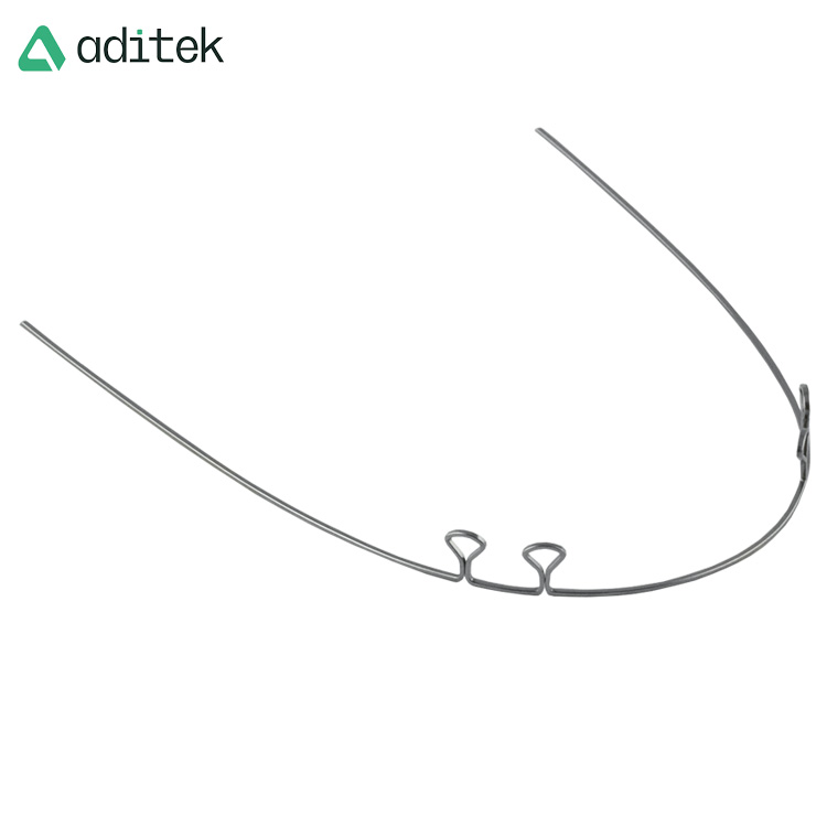 Łuki z pętlami firmi Aditek są indywidualnie formowane zgodniez rygorystycznymi normami. Nasze łuki są dostępne w wersji z pętelkami Keyhole Loops i T-Loops, co pozwala lekarzom na wybór odpowiedniego kształtu. Dzięki tym pętlom łuk ze stali nierdzewnej ma wielofunkcyjne zastosowanie w leczeniu.